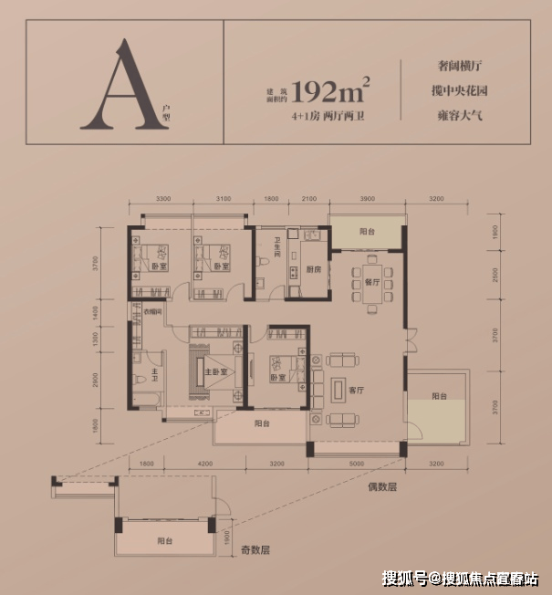 在售户型:192—243㎡4+1房(大平层)︱188-235-634㎡(叠墅)