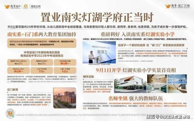 项目周边教育资源丰富,灯湖实验小学(2024年9月开学)已纳入南海实验中学教育集团,属于公办优质小学。此外,南海实验中学映月校区(省一级,中考成绩蝉联南海区19年榜首)也在3公里范围内,高中则有石门系金桂高中(引入石门中学管理)。