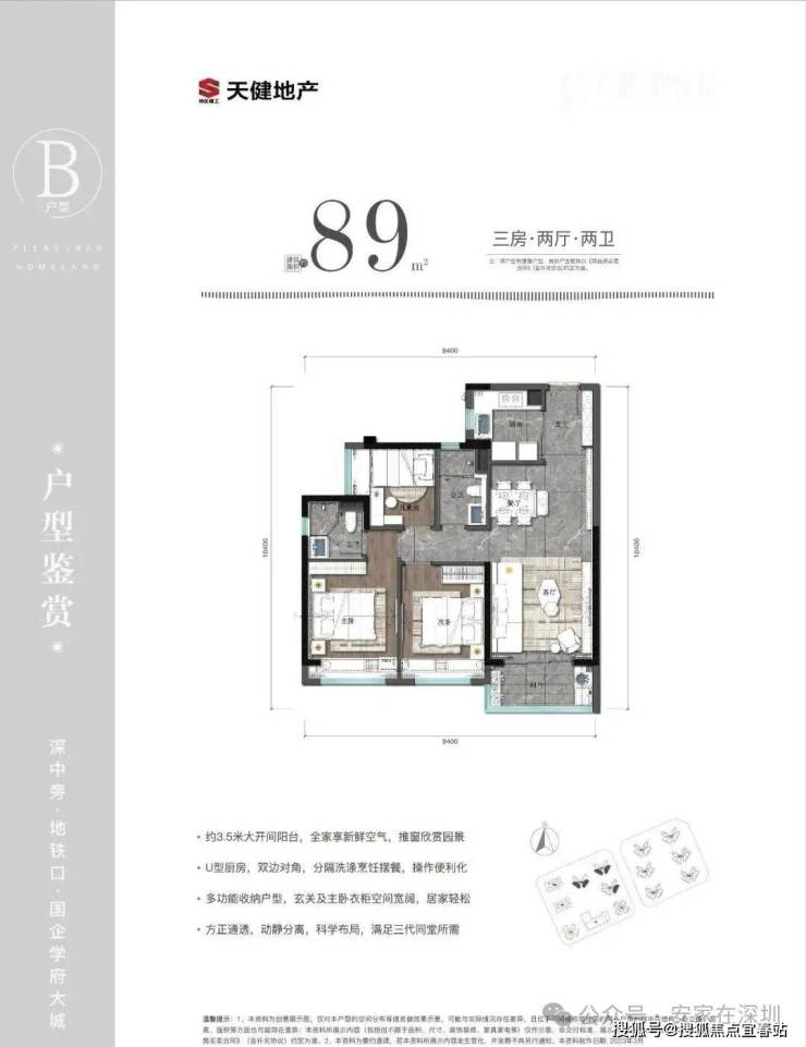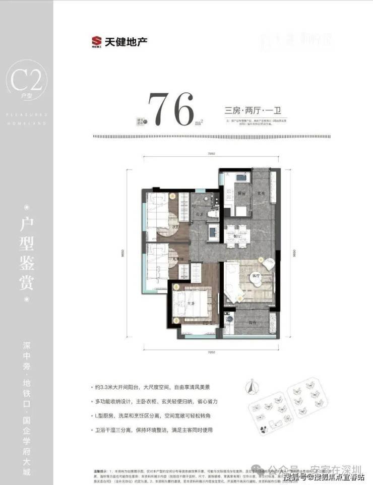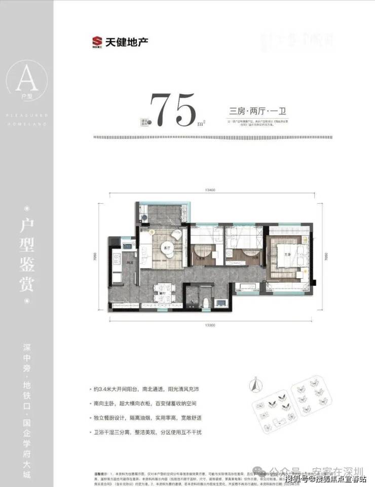 深圳天健和悦府首发 75-99㎡高实用率三房,主力户型为约75㎡三房两厅一卫、89㎡三房两厅两卫、99㎡三房两厅两卫还有约75㎡|南向通透 实用三房,预计均价3.5万/㎡,装修交付