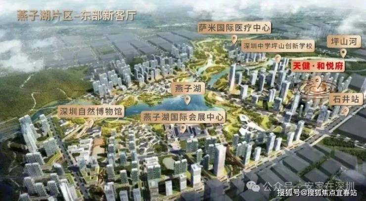 2023年深圳两会提及加快建设9大区域,包括燕子湖新区,坪山十四五提出“1+7+N”重点片区格局,1为燕子湖,市级区级双重背书,高标准打造定位东部城市新客厅。
