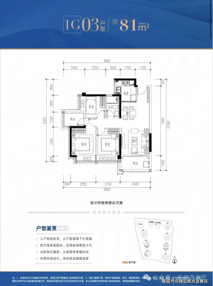 1H-02/03户型:约81㎡ 三房两厅两卫: