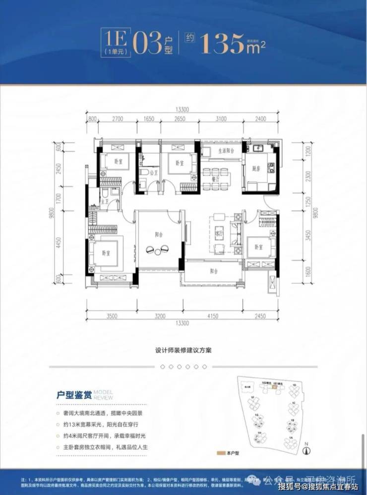 1E1-03户型:约135㎡ 稀缺五房两厅两卫: