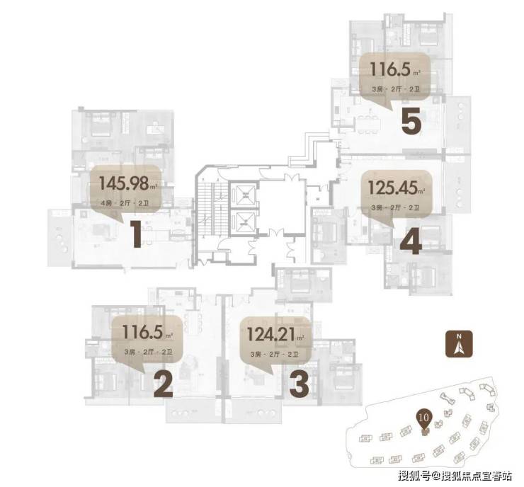 -116-146㎡三至四房:4.5米阔绰客厅,餐客独立分明,空间实用主义与仪式感并存。