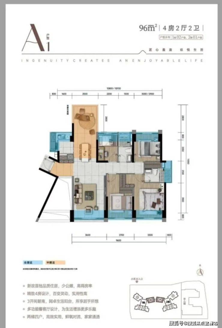 颠覆认知的结构,96平米可以做到4房南北通,低总价,低月供,高实用