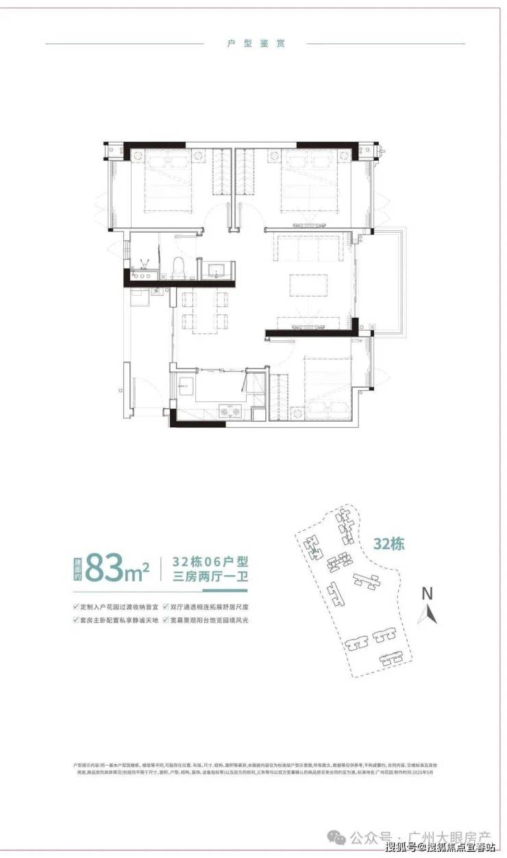 此次广地花园·观灏加推的新品32栋悦景楼座,面积段分别为86m²、96m²、100m²悦景三房,多面采景,三面望水,通透采光,充分利用户型的每一寸肌理,以有限的生活空间焕发更多生活灵感,打造全方位人性化居所。
