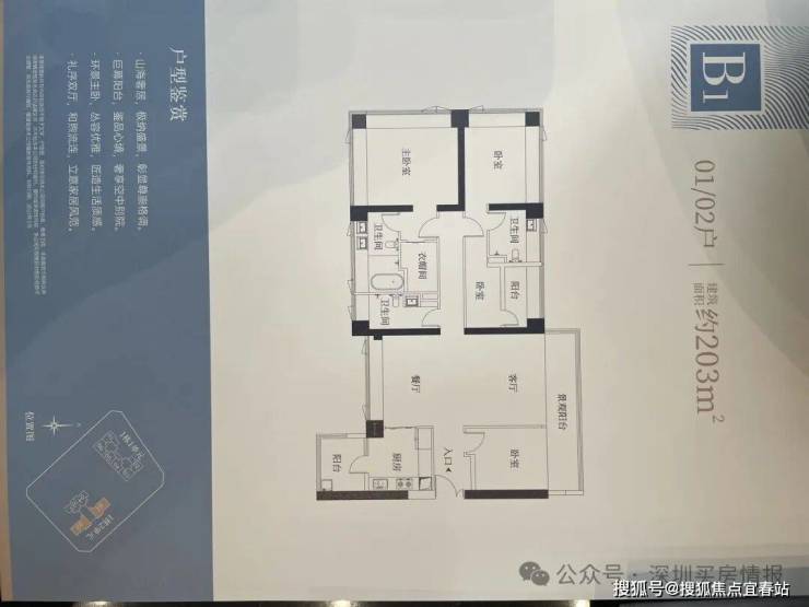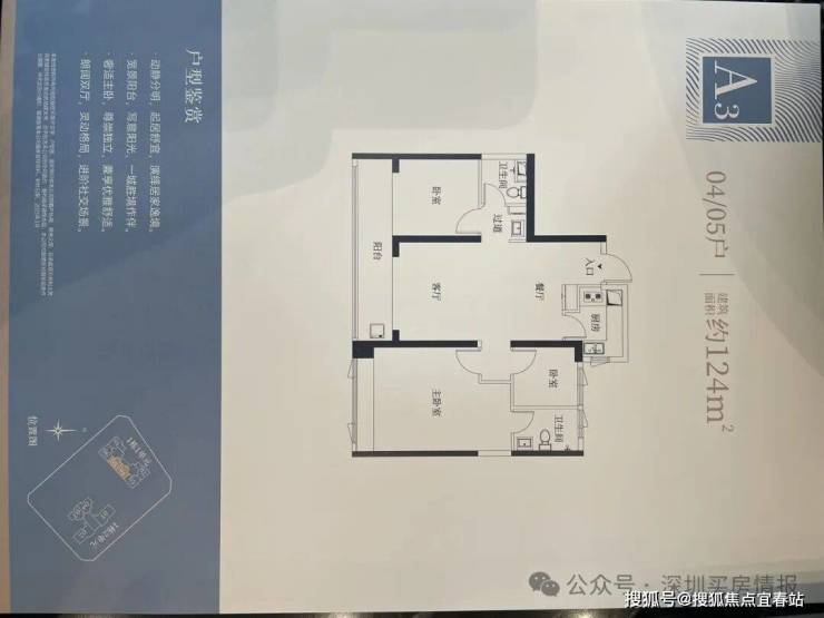 【124㎡的3+1房2厅2卫】1栋户型,竖厅格局,LDKB一体化设计,动静分区,主卧套间设计,还有一个多功能间可以做书房,U型厨房,公卫三段式分离,得房率:72.07%(不含赠送);