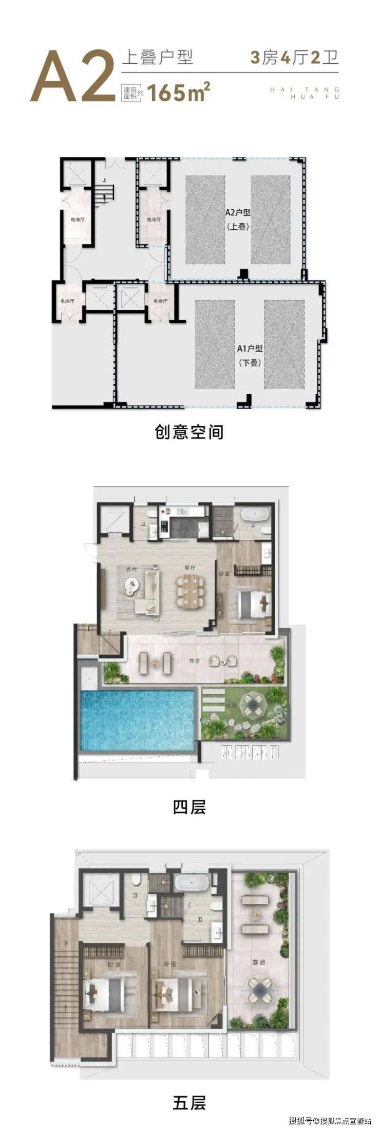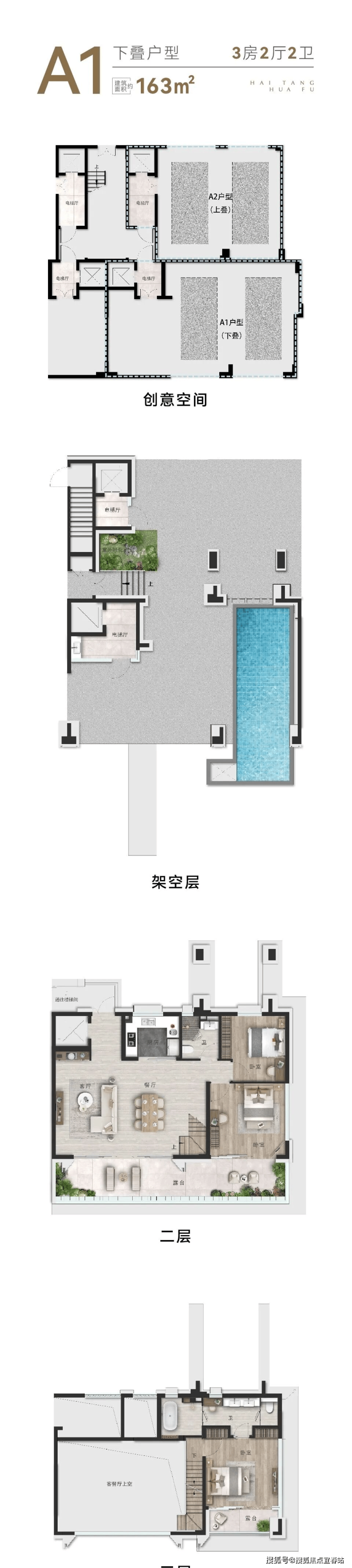 低密栖海叠拼:上叠建面165㎡,下叠建面163㎡