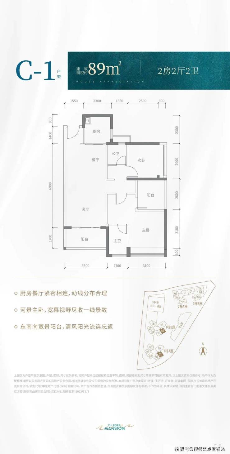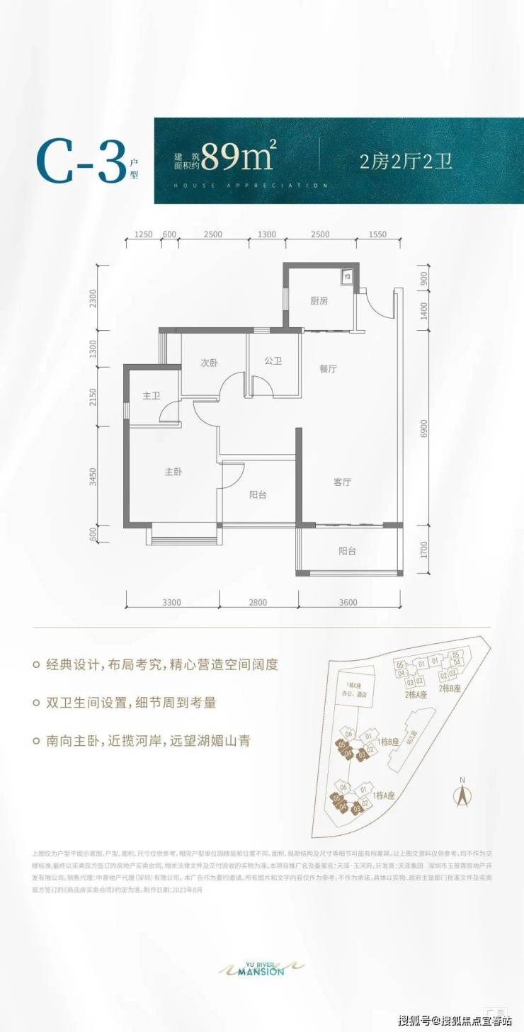 户型面积布局C189平三房两厅两卫这一户型双开间朝南,通风采光俱佳,阳台、主卧和次卧都能看南向河景,甚至是卫生间也有河景,满足实用居住的同时,给生活更多的诗情画意。