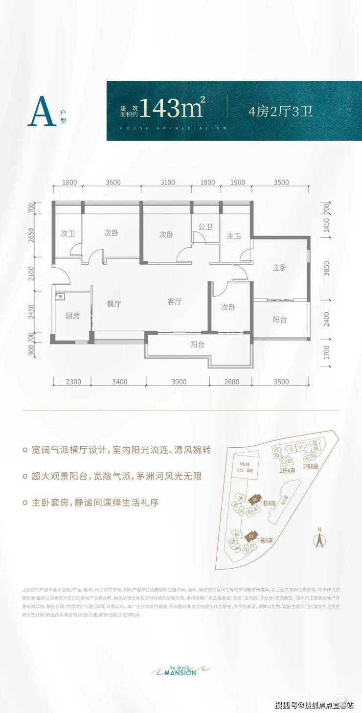 推售户型:建面约80-143㎡2-4房河岸美宅