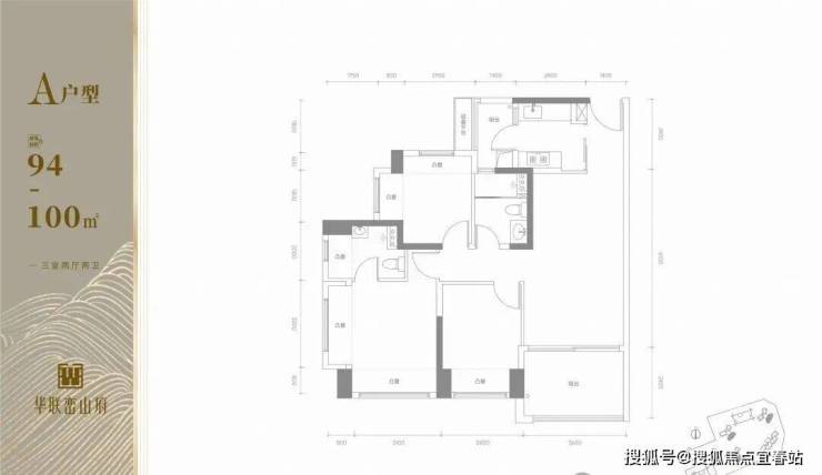 94-100㎡三房两厅两卫(平层):刚改友好,LDKB 一体化设计,3.6 米开间 + 双阳台,全南向 + 凸窗,得房率约 95%,适合三口之家。