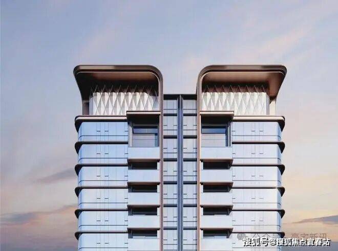 建筑外立面大胆采用弧线艺术勾绘王座式塔冠,以及大面积通透LOW-E玻璃幕墙,辅以香槟金、内敛灰、雅致咖的品质铝板,淬炼出恒久典雅的观感。