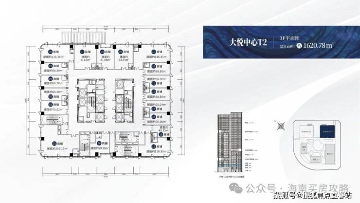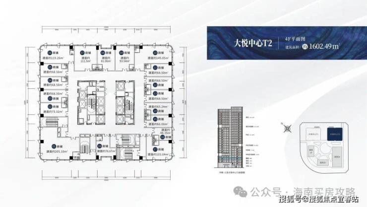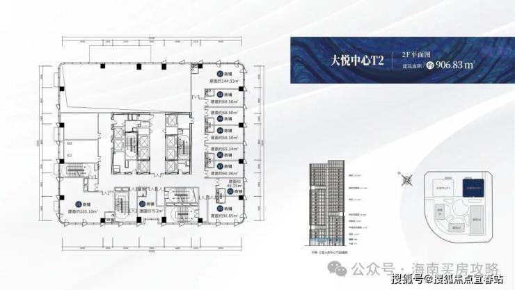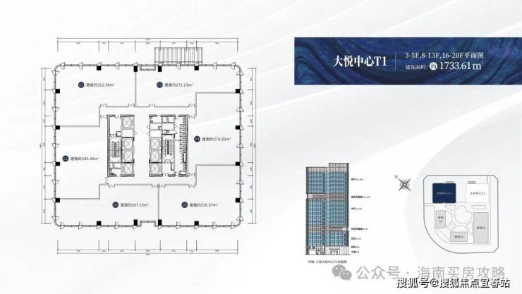 【楼栋概况】:🔍大悦中心T1,城市之光,高度88米,共20层,总建筑面积约3万㎡,在售户型建面约:267-316㎡,6梯6户,标准层高约4.2米。