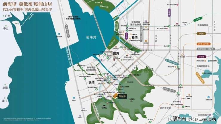 项目地处前海合作区大小南山片区西组团,以教育、生活、体育等公共服务为核心规划。承接桂湾国际金融城、妈湾深港国际服务城,共构前海黄金三角,工作生活无缝衔接。坐拥约 53.8 公顷绿地,山海通廊直连妈湾理想城市,铸就公园城市生态宜居标杆。