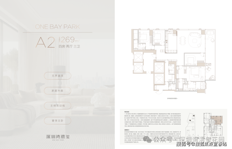 一席藏尽海/湖/园/城,四重盛景,踞守深圳湾畔约270°环瞰海景壮阔、湖境悠然、园景森氧、城脉璀璨的封面地脉。近享深圳人才公园,占地77万平方米,内湖面积约32万平方米,"公园生活圈"步行可达。(信息来源:深圳人才公园公众号)