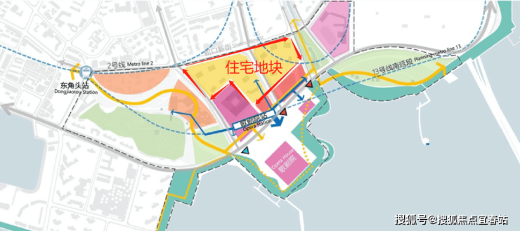 临近13号线歌剧院站,附近还有地铁2号线东角头站。南侧是望海路、东侧是后海滨路,无论是地铁还是自驾出行均十分便捷。