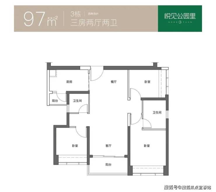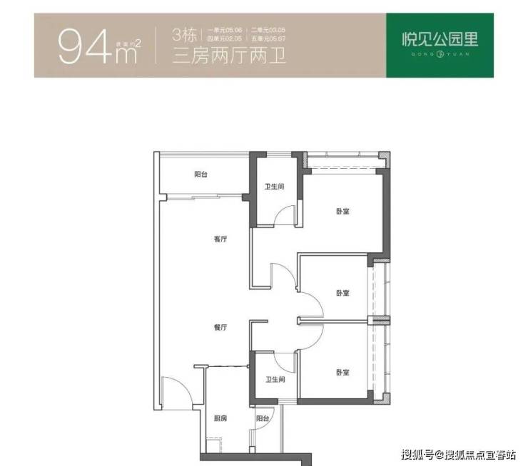 建面约85-120㎡3-4房,户户双阳台