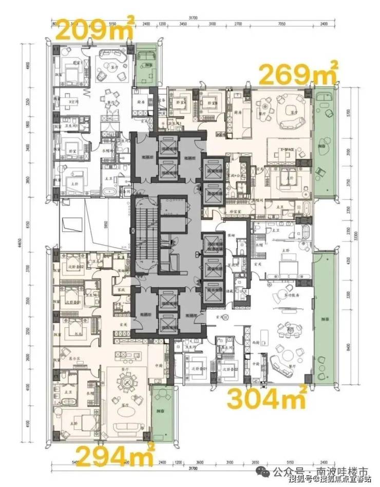 ——低区 5F起(150米以内)是约209-304㎡四房大户型;