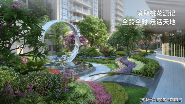 项目园林设计了 儿童活动场、沿阶花池、雕塑水景、休闲长廊、异形凉亭 等多重空间,能满足全龄段休闲需求。