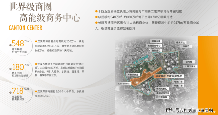 ◎广州十四五规划确定长隆万博商圈为广州第二世界级地标商圈,规划总占地面积约200万㎡,总建筑面积约548万㎡(规模相当于10个天河城),约368万㎡地上,约180万㎡地下(堪称广州最复杂地下城,是珠江新城地下空间的3倍,将引入大型超市、水族馆、零售、餐饮等)。