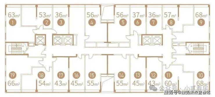 D-2公寓:399户(36-45㎡大单间,53-60㎡一房一厅,63-68两房一厅)