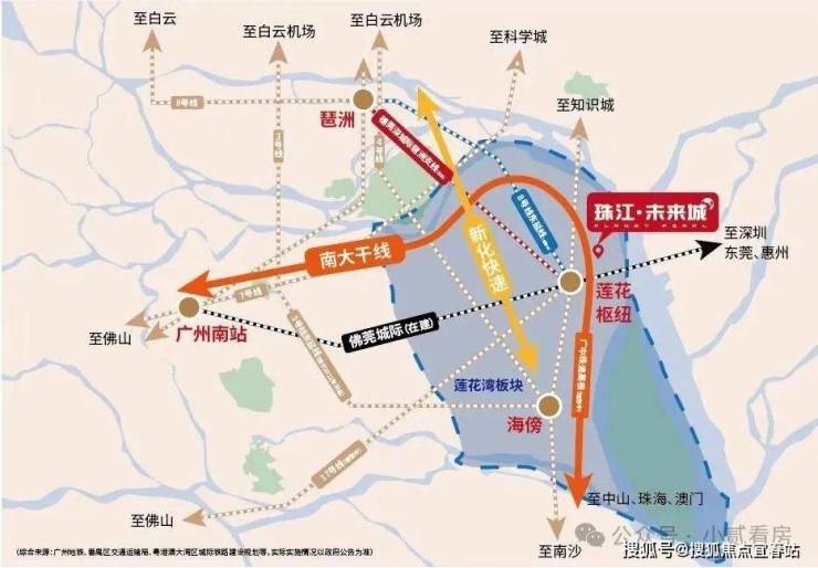 未来,不仅可以实现3站到琶洲CBD、万博CBD,4站到南站(佛莞城轨、穗莞深城轨琶洲支线),触角延伸到佛山、东莞和深圳,将莲花湾引领至广州主城区乃至湾区各地。