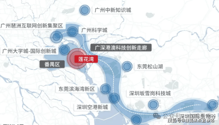 莲花湾板块价值:莲花湾片区位于琶洲、大学城、科创城三大科创高地金三角核心的广深科技创新走廊科技创新中心,是链接广州南北发展的战略支点、是承接大学城科研成果转化的承载区、是缝合珠江口两岸的重要节点,人才、生态和价值优势明显,是粤港澳大湾区的价值洼地。