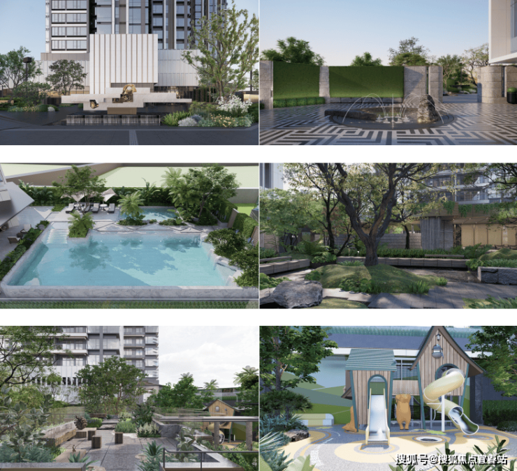 立体森谷园林:特邀城市级公园设计大师【派澜设计】执笔,落地飞瀑会客厅,无边际泳池、双儿童主题乐园等度假场景,将自然垂直植入社区每一个角落。
