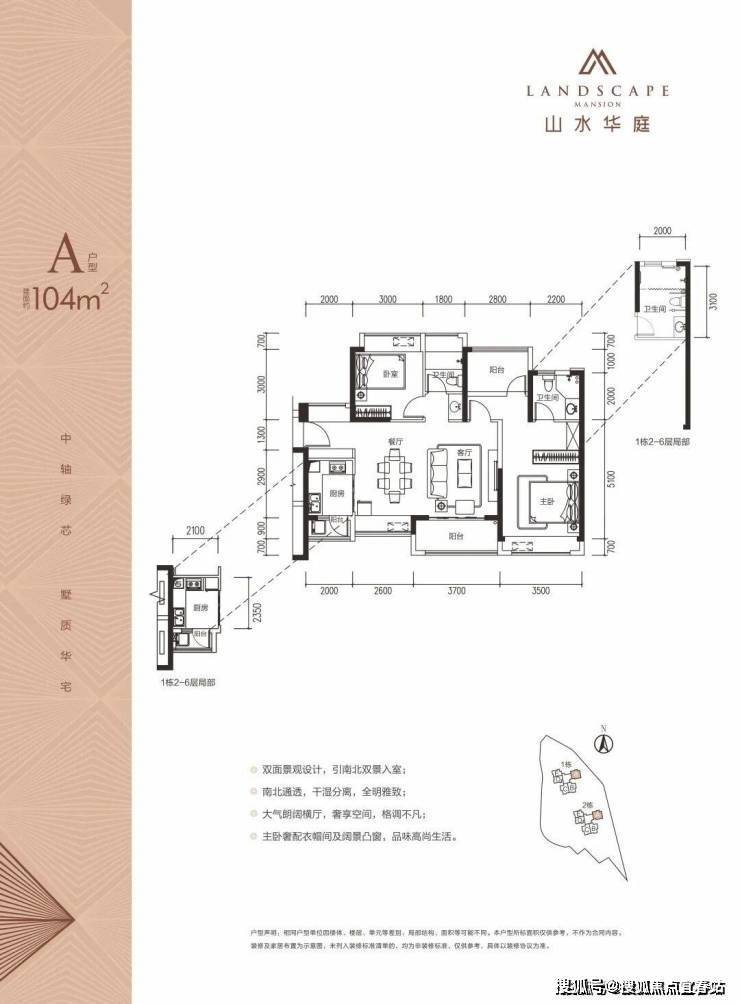 建筑呈点状布局,无遮挡视野。纯住宅,无其他业态干扰,生活方式更纯净,营造臻稀无双的圈层氛围。建面约66-104㎡23层墅境臻品,引全城争藏。