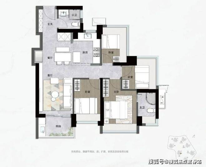 入门级的就是片区内罕有的约83㎡三房两卫,同样拥有主卧套房的私密、双次卧的方正和全屋飘窗,对二胎非常友好。