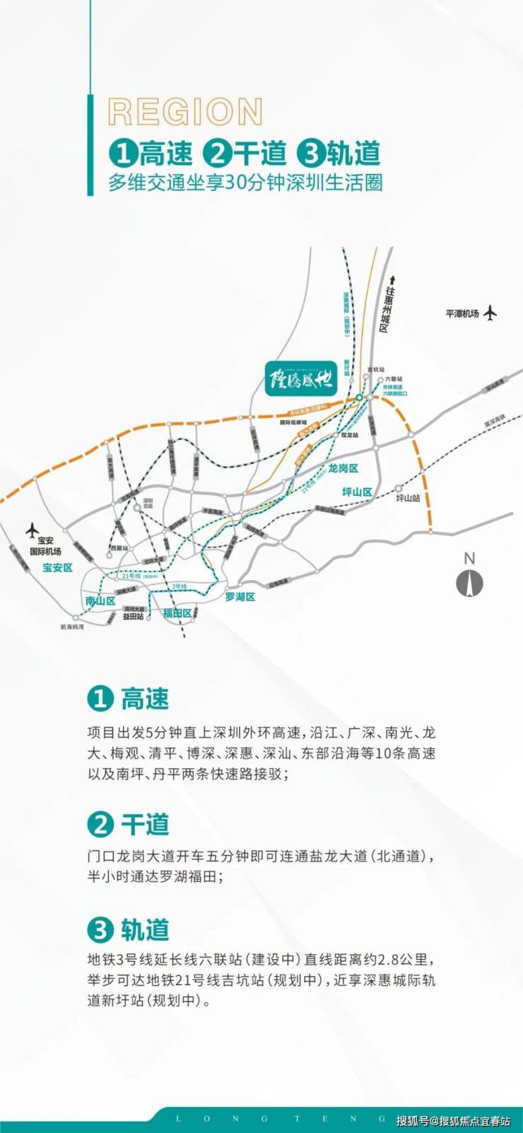 地铁3号线延长线六联站(建设中)直线距离约2.8公里,举步可达地铁21号线吉坑站(规划中),近享深惠城际轨道新圩站(规划中),出门即上深圳外环高速,龙岗大道、盐龙大道,实现深圳东部与市中心区乃至香港的快速出行。