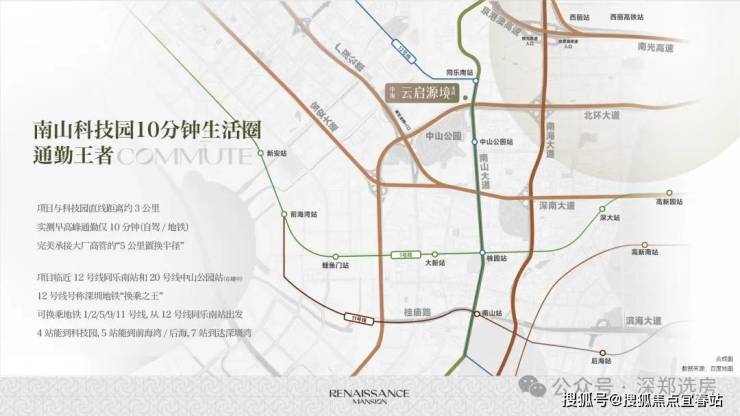 项目距离12号线同乐站直线距离约300米,周边还有在建的15号线同乐关站,贯穿前海、后海、南山、宝安等重要片区,环经济发展核心区域。