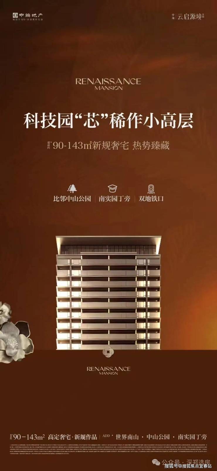 科技园通勤神盘【中海云启源境】加推最后1栋2单元01,03,05户型,
