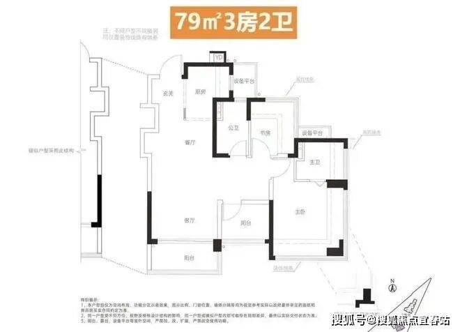 建面约78-84㎡ 3房2卫:主力户型。其中约84㎡户型做到了横厅南北通透,这在同面积段产品中极为罕见,极大地提升了居住舒适度。