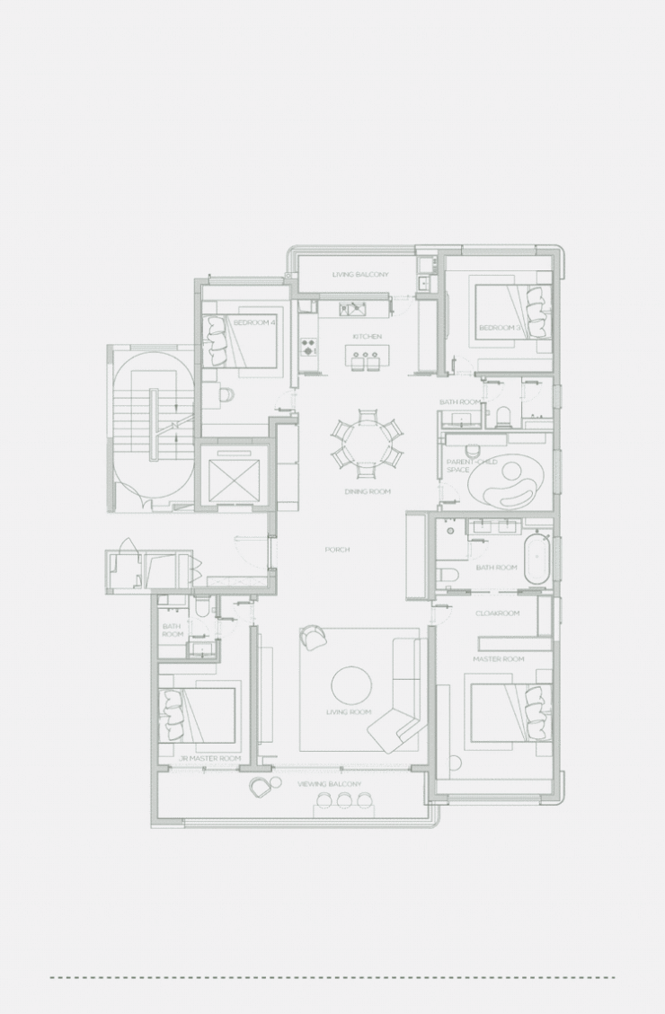 在二孩、三孩渐趋主流的当下,对于亲情的珍视,正成为高净值家庭择居的首要考量。一家三代共居在一方屋檐下,自然需求更宽适的尺度、更灵动的格局和兼顾礼度与隐私的动线设计。缦云广州约230㎡全能五房户型,以“超级四叶草”格局铺陈空间,四个卧室如叶片般分布于户型四角,动线独立互不交叉,确保每位家庭成员享有私谧的休憩领地。南向双卧均采用套房式设计,豪华主人卧房配置步入式衣帽间、双台盆盥洗台、独立浴缸,主人晨起或晚归,都不再打扰家人休息。