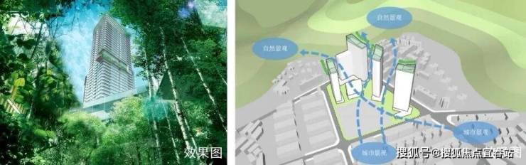 通过四栋高低错落的建筑天际线与高低起伏的梧桐山脊相呼应,让空间与山景结合,自然入室;青山远黛园景,窗窗见景。