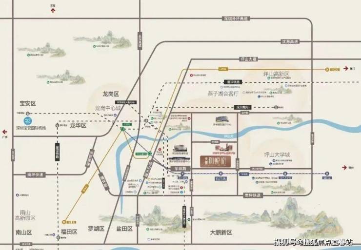 约1.2KM到燕子湖国际会展中心,约6KM内到坪山体育中心,紧邻约10万㎡的六馆一城、深圳自然博物馆等环绕,媲美福田市民中心。