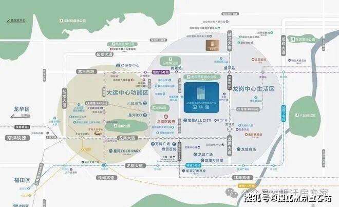 华润·昭华里位于龙岗中心城区府旁,仅约600米的位置,周边有十余个市政配套环绕,交通、教育、公园都在以区府为圆心的半径圈内,可以说,中心城这片「20年时光淬炼」的醇熟烟火,都是昭华里的后花园。