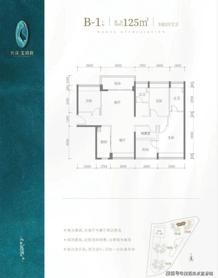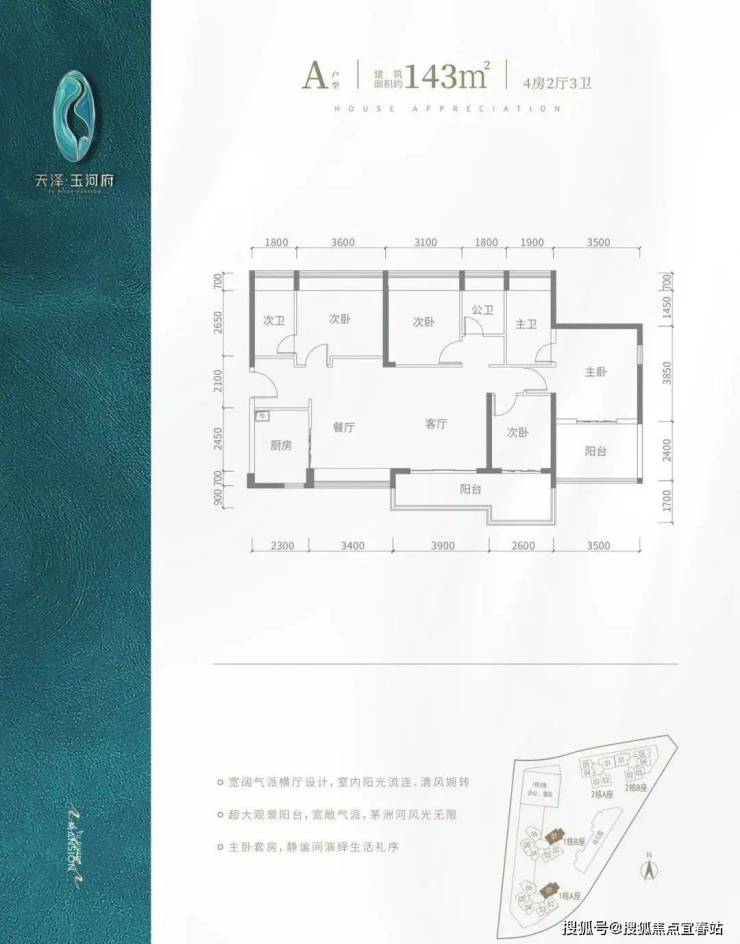 天泽玉河府,总占地面积约1.57万㎡,总建筑面积9.15万㎡,容积率5.84,绿化率40%,共由4栋23-33层住宅组成,其中1栋A/B座商品房33F,1栋C座是酒店+办公22F,2栋A座商品房33F,2栋B座商品房23F,3栋是一所9班制幼儿园。