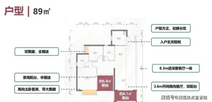 建面约80㎡的户型开间就有约3.5米,格局方正、动静分离、空间开阔、采光充足。基本上达到了市面上90㎡以上户型的尺度。
