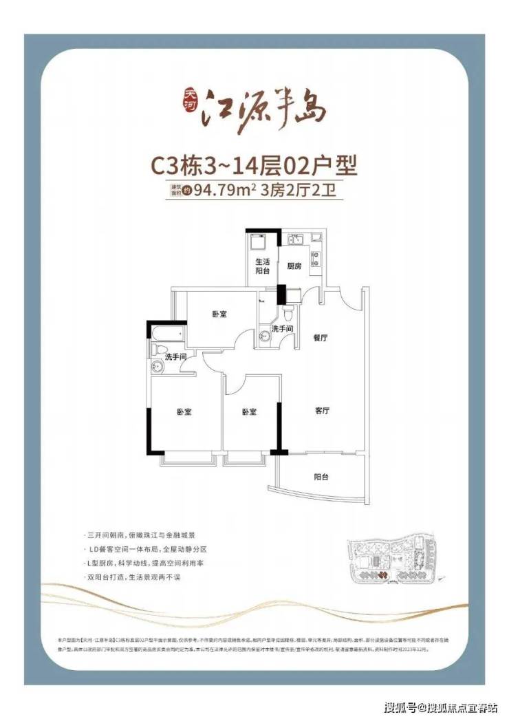 🅣🅞🅟02户型【95㎡3房2卫】东南向望江