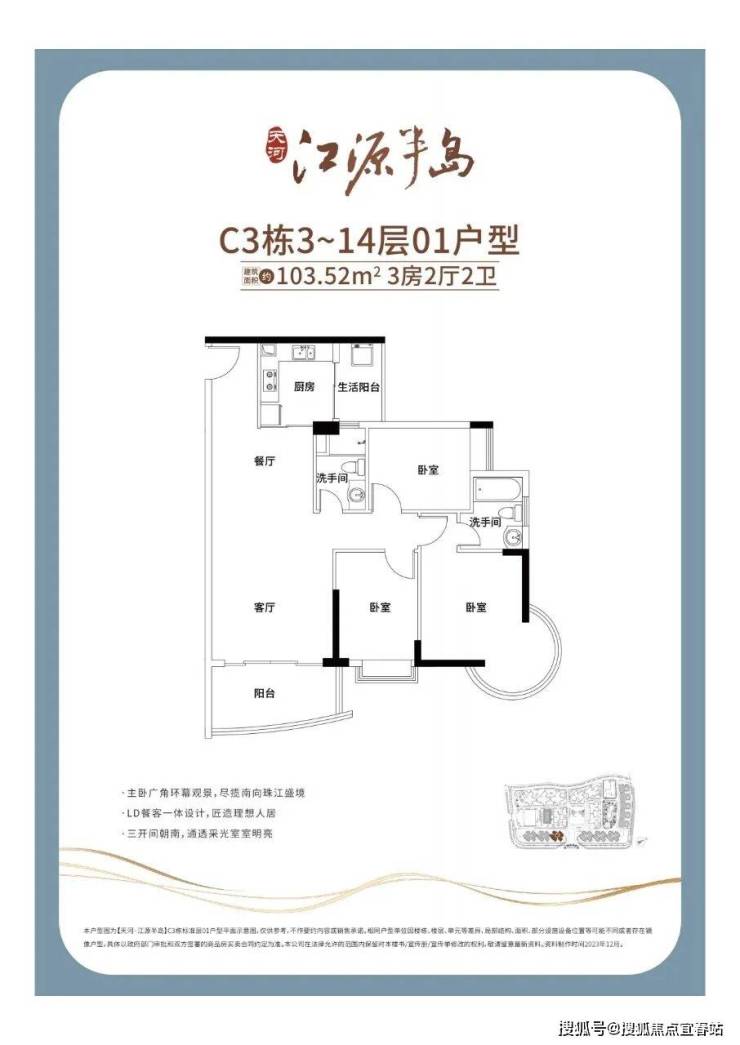 🅣🅞🅟01户型【103㎡3房2卫】东南双面瞰江