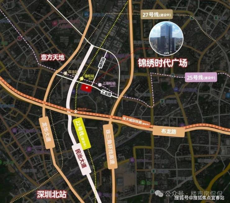 双线地铁交汇:临近地铁22/25号线油松站(建设中),未来开通后,地铁约15分钟即达深圳最大交通枢纽——深圳北站,约25分钟可达福田、南山核心区。