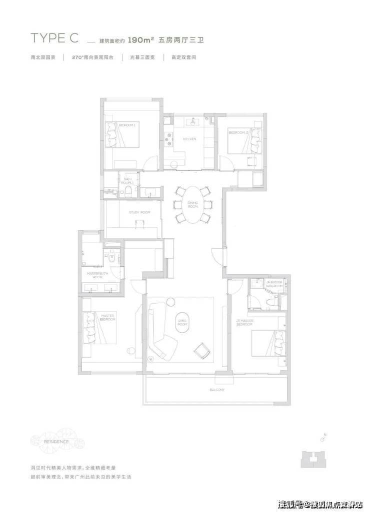 【190㎡户型】南北双园景-光幕三面宽-270度超广角观景视野-经典四叶草布局