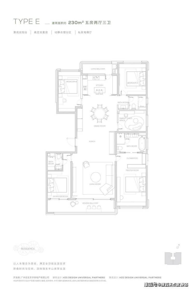 【230㎡户型】观景双阳台-高定双套间-私家电梯厅-双洄游动线