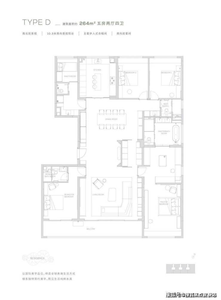 【264㎡户型】10.3米南向景观阳台-南北双景观-主套步入式衣帽间-独创灵动岛设计,生活场景多重切换