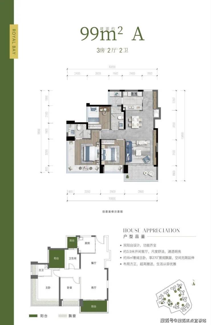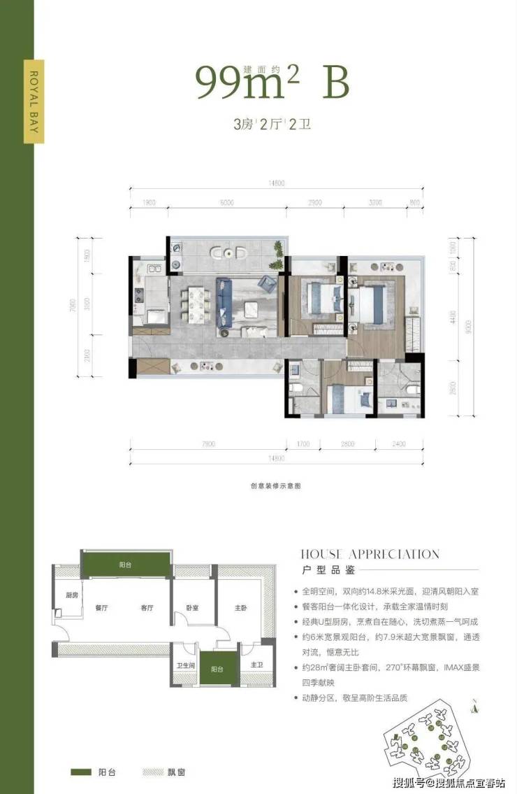 户型亮点:双阳台设计,布局方正,超高赠送