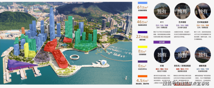 整个太子湾总商业体量达46万㎡,比壹方城还要大10万方,其中备受期待的太子湾K11建面就约22.8万㎡(在建中,预计2024年年底开业),是国内首个临海K11,也是面积最大的旗舰店,而且造型就像一艘航空母舰,是妥妥的地标建筑、网红打卡地。