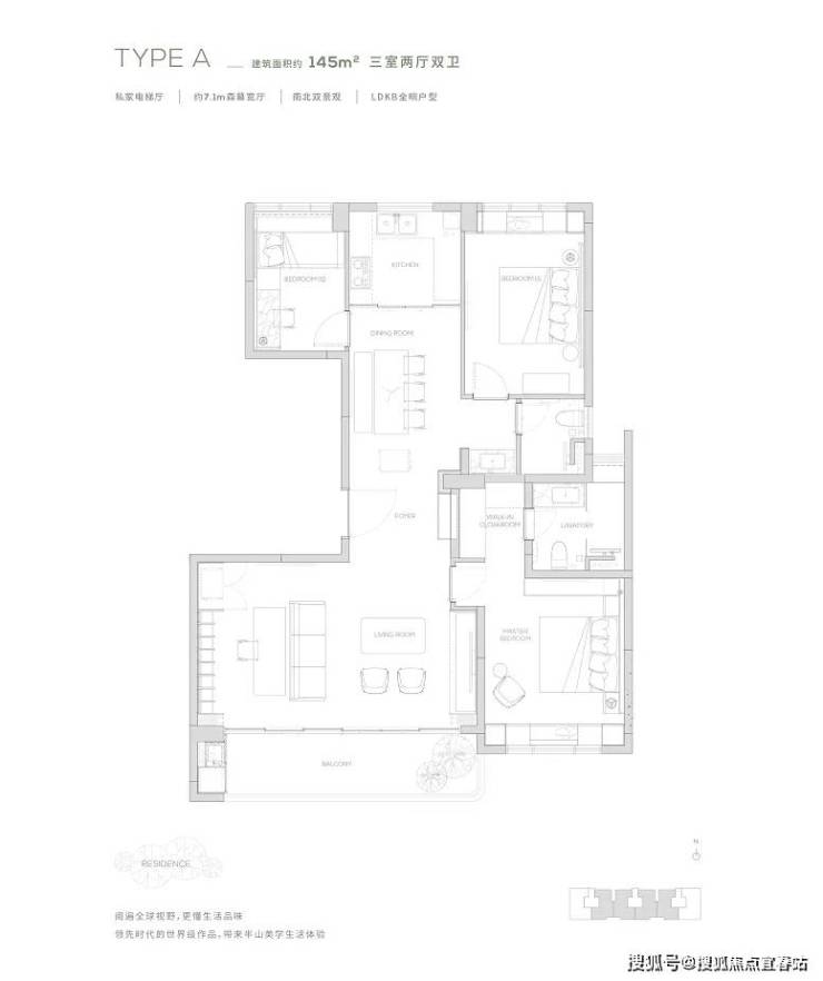 【145㎡户型】独享私家电梯厅-约7.1m²森幕宽厅-LDKB全明户型