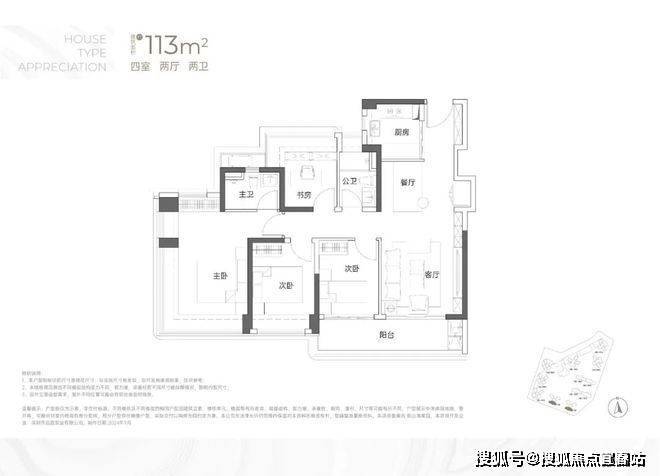 设计的是竖厅双龙抱珠格局,客厅3.5米开间,LDKB一体化,4个卧室分别做到了3.7米/3.4米/2.8米/2.6米的宽度,主卧加2个次卧270°全景飘窗,客厅连接次卧出6.1米长的大阳台,U型厨房,得房率约95-97%(包含赠送),西南或东南朝向。