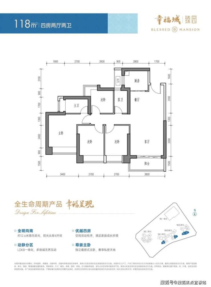 118㎡的4房2厅2卫,设计的是经典竖厅格局,客厅3.8米开间,LDKB一体化设计,四开间朝南,U型厨房,卫生间干湿分离,得房率75.9%(不含赠送),东南朝向。套内面积89.09㎡+赠送面积9.65㎡=实得面积98.74㎡,加上赠送后实际得房率约84.09%。